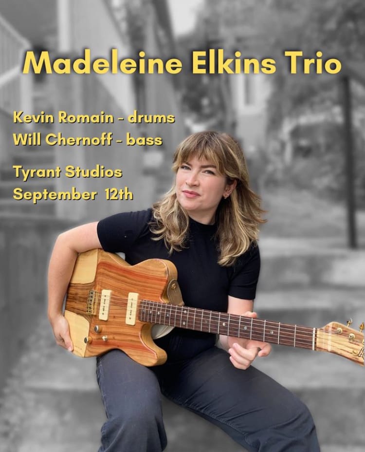 On Thursday, September 12, 2024 at Tyrant Studios, I joined guitarist Madeleine Elkins in her new band: a trio with Kevin Romain on drums.